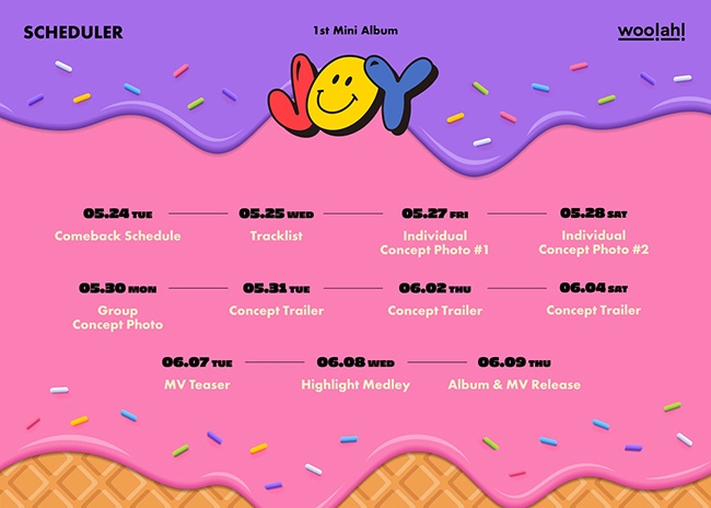 woo!ah!(우아!), 미니 1집 ‘JOY’ 스케줄러 공개…다채로운 프로모션 예고 (2022.05.24)